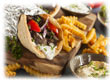 | GREEK GYRO Combination of Beef & Lamb wrapped in Pita with Lettuce, Tomatoes,Onions and Tzatziki Sauce, served with French Fries and Greek Salad |